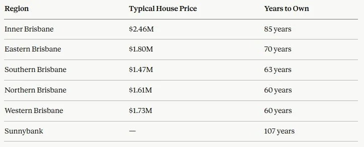 Sunnybank. One of the most recommended suburbs in Queensland property circles right now. 107 years to own on local incomes.